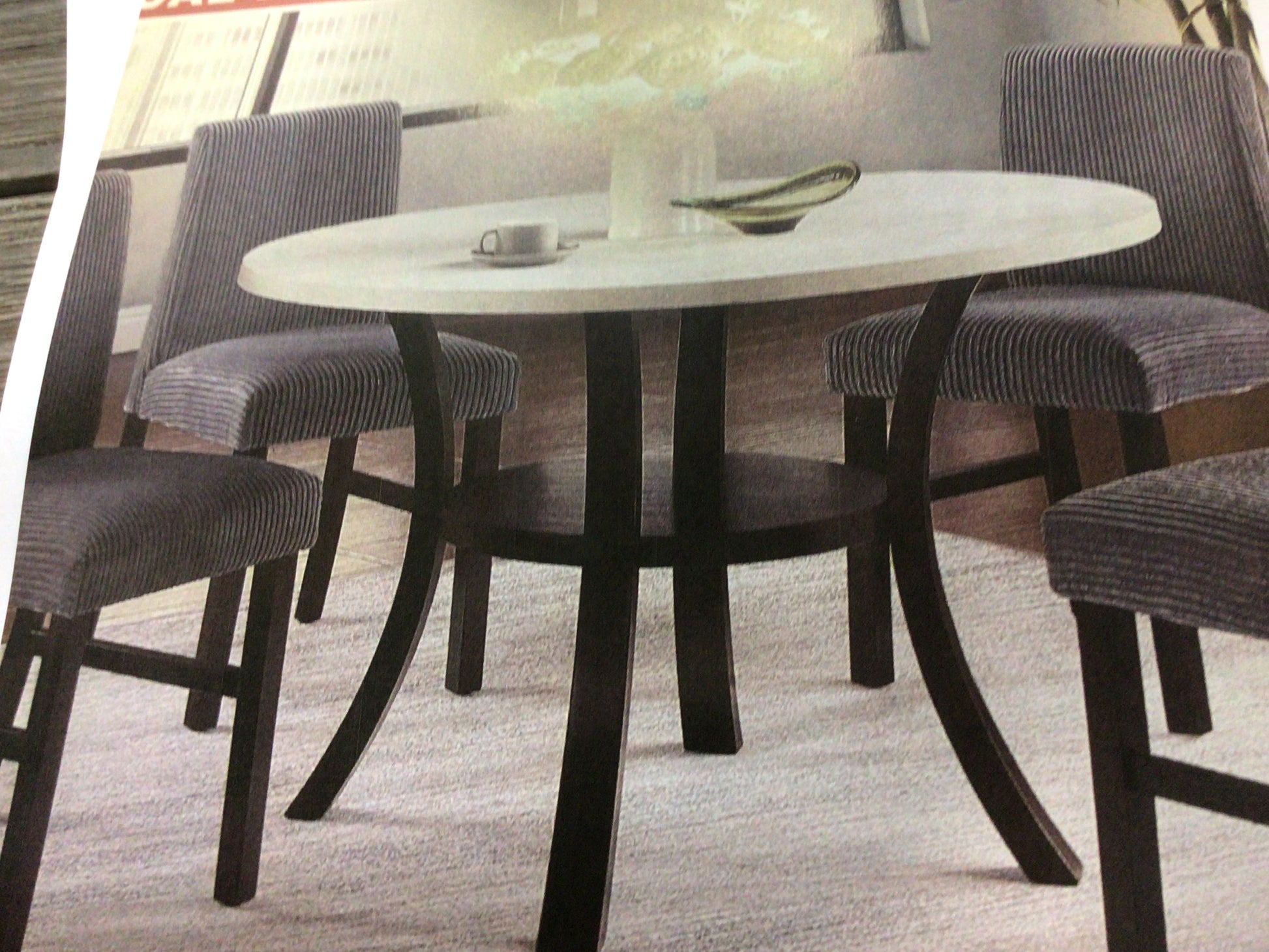 Round Faux Marble Dining Table 4 Cushion Chairs
